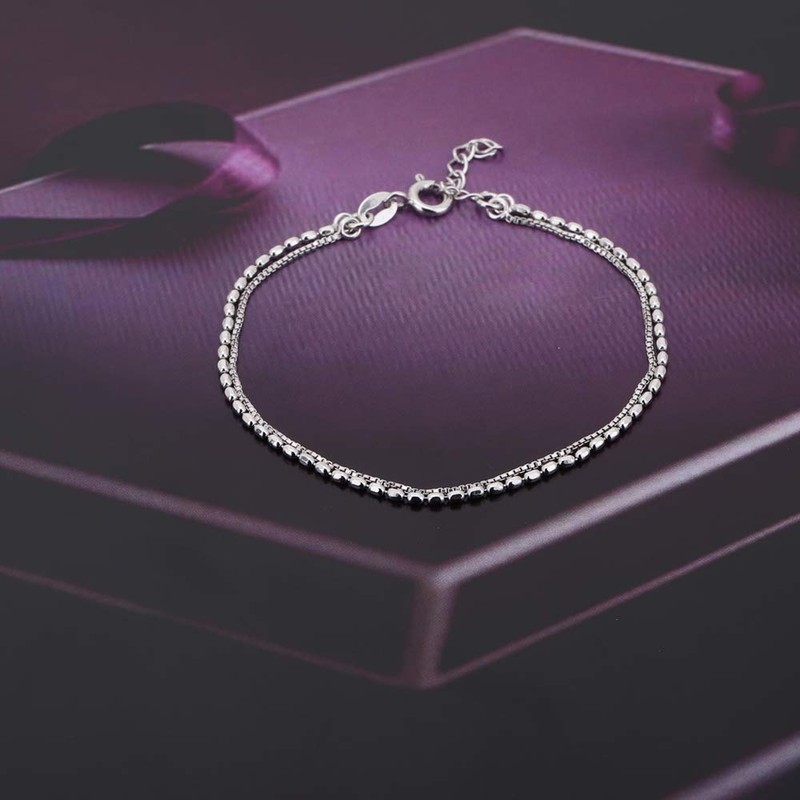 Vanbelle Sterlng Silver Jewelry Silver Beaded and Multi-layered Chain Bracelets with Rhodium Plating for Women