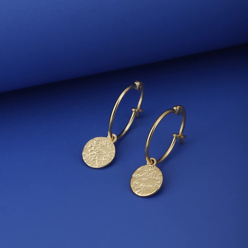 - GEMSTONE: Gold-plated laser hoop earrings for casual fashion styling of women.