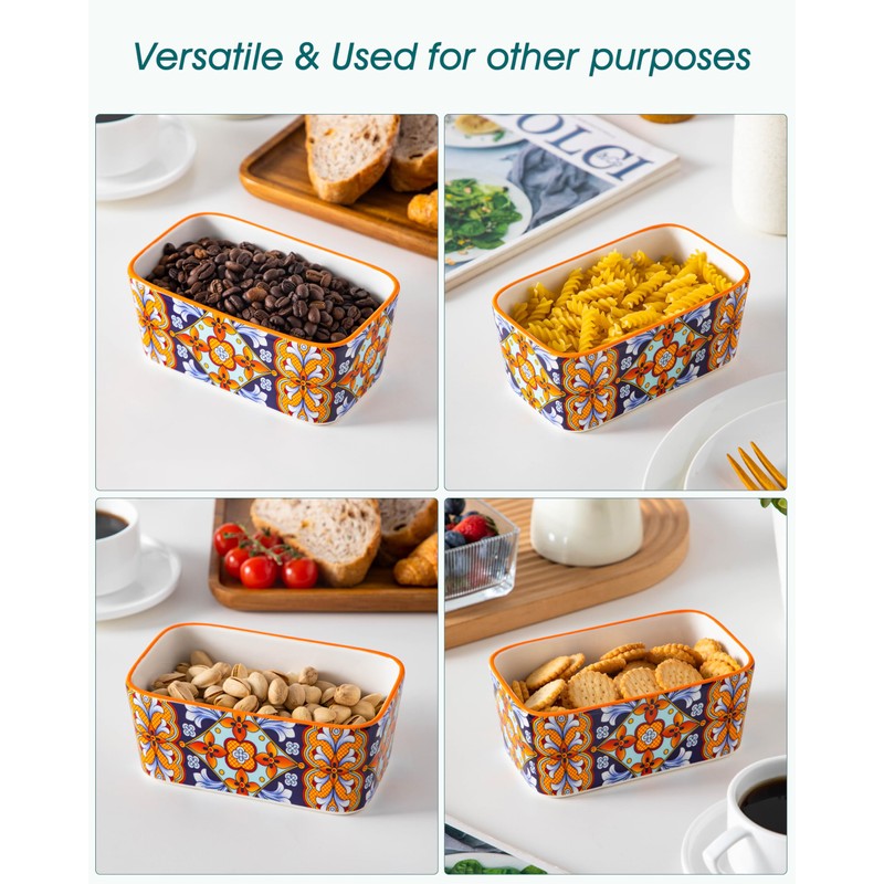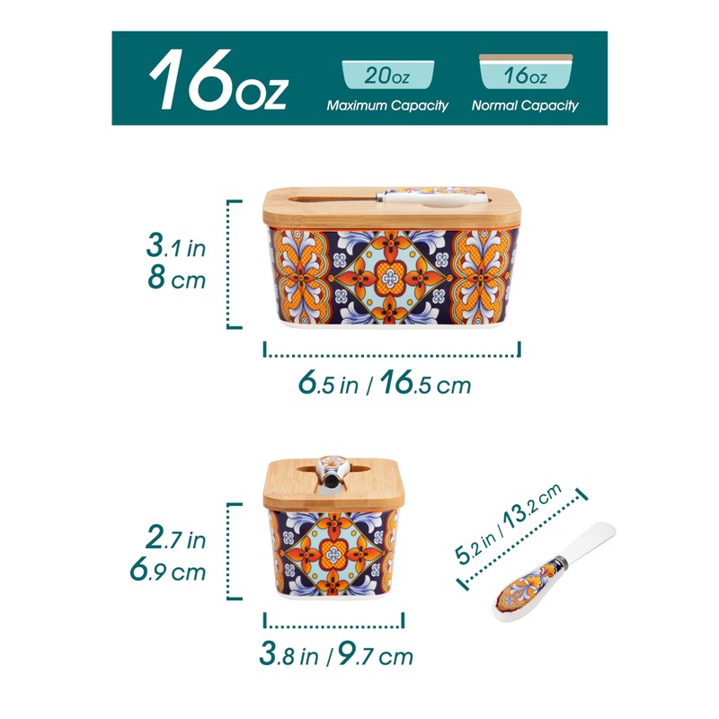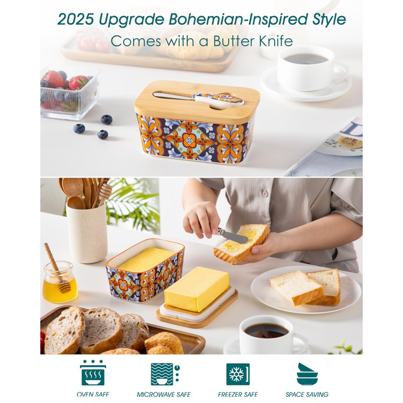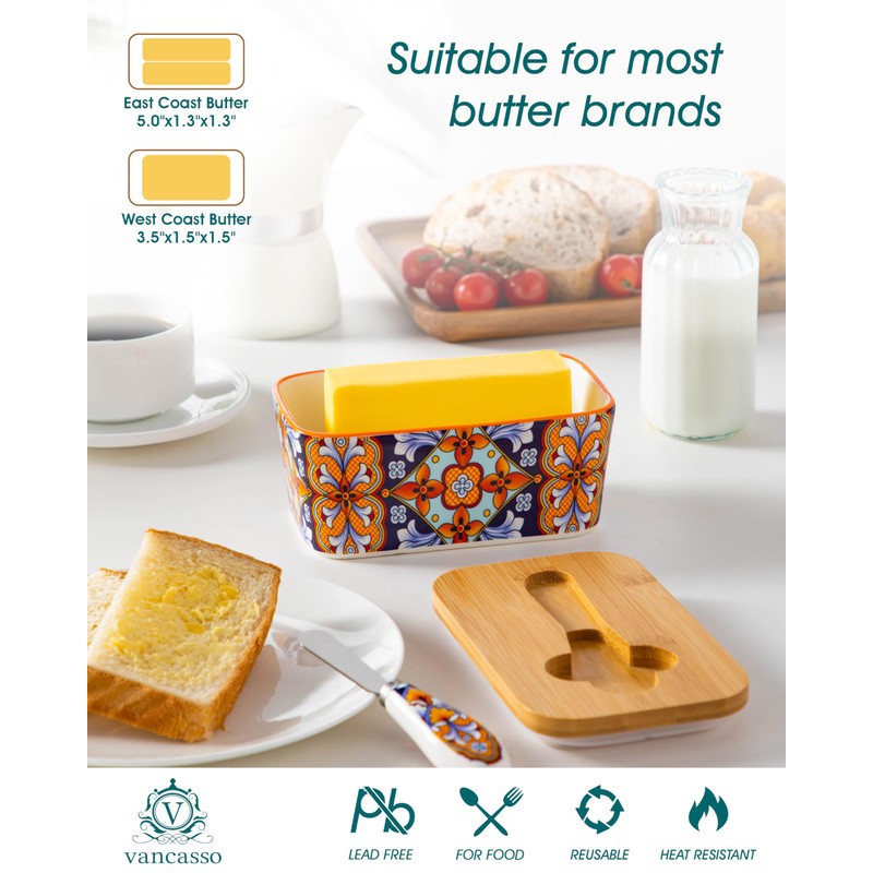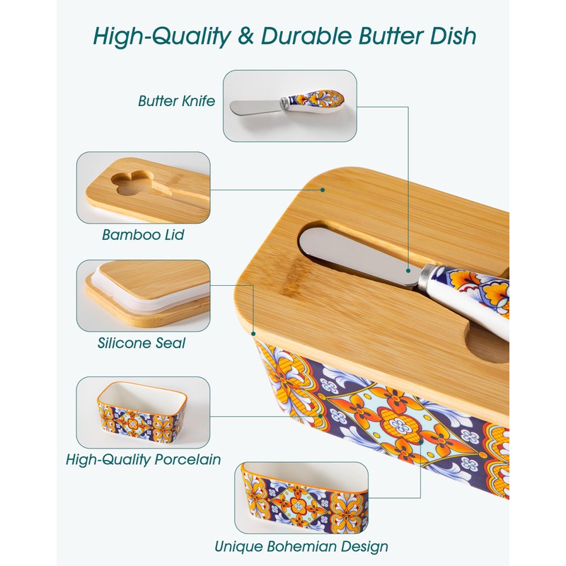 - 【Vibrant and Colorful Designs】vancasso bohemian style Butter Dish with Lid boast enchanting and intricate designs that capture the free-spirited essence of Bohemian culture. The lively colors and artistic patterns evoke a sense of joy and positivity, enhancing your dining experience with a burst of energy and happiness.