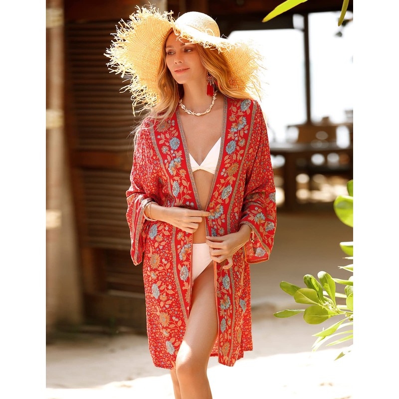 When you go on holiday in a bikini by the sea, this beach kimono not only protects you from bright UV radiation, but also makes you stand out from the crowd.