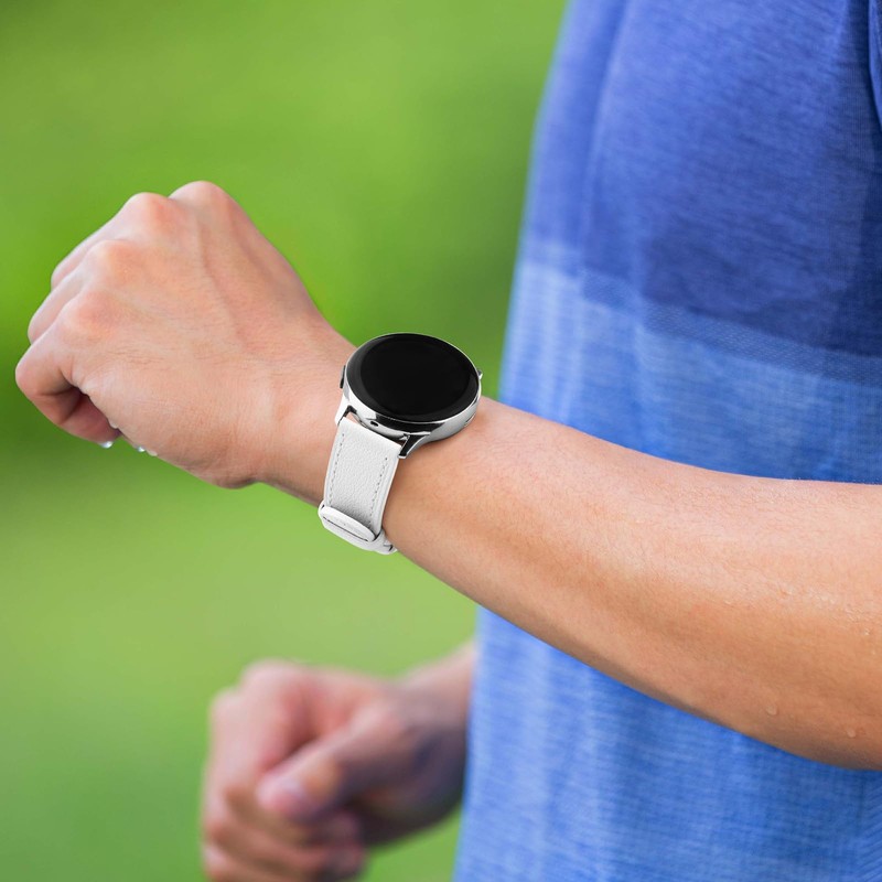 Vancle For Watch Strap 20 mm Leather Bracelet Women Men Soft Breathable Leather Sport with Quick Release Suitable Replacement Strap for 20 mm Bracelet (White)