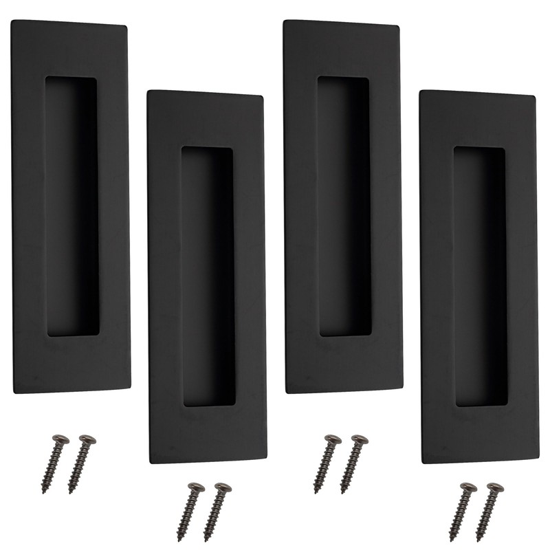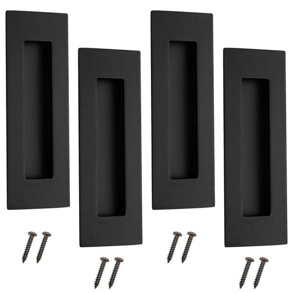 Vancoho 6 Inch Recessed Pocket Door Pull, Stainless Steel Rectangular Finger Flush Puls for Sliding Closet Door, Barn Door Handle Rectangular Hardware (Matte Black, 4 Pack)