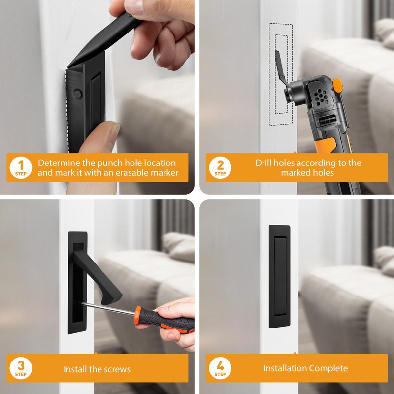 - Gravity Closed Design: When using the black pocket door pull, press the top of the handle to hold it. When not in use, the handle will automatically close due to gravity. The simple design makes the recessed door handle more durable