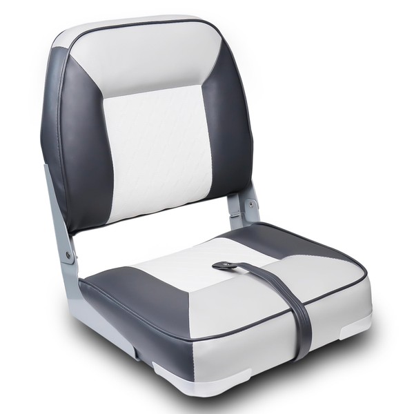 Vancus Boat Seats Low Back, Marine Fold-Down Fishing Boat Chairs (White & Charcoal-1 Pack)