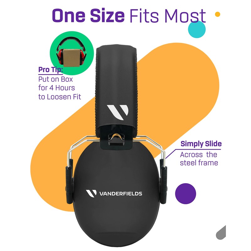 Vanderfields Kids Ear Defenders Children - Noise Cancelling Headphones Autism - 27dB SNR Black - Passive Sound Blocking Earmuffs - Kids Ear Protection Earmuffs - Boys, Girls, Toddlers Age 3-16 Year
