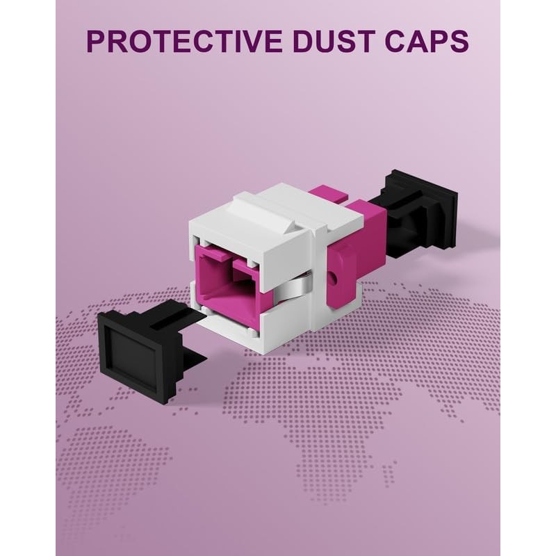 - 【Durable&Protective】 Made of rugged materials, the SC/OM4 keystone coupler can withstand repeated plugging and unplugging (≥1000 times) to ensure the stability and longevity of long-term use. Equipped with a dust cover to effectively prevent dust and dirt from entering, simplifying maintenance work.