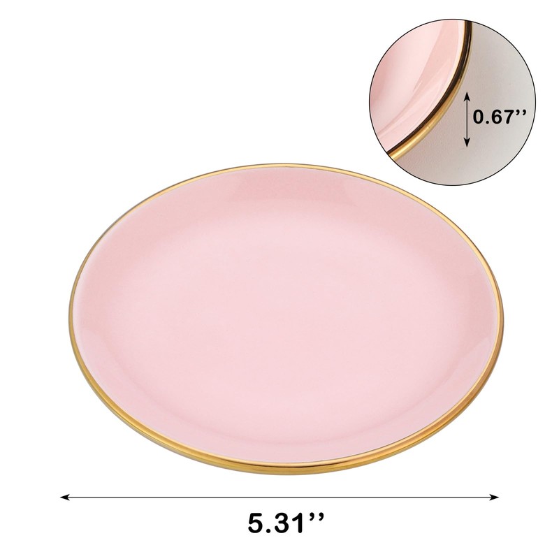 - Unique gold rim design - This ring holder dish is designed with a dainty gold rim, providing this jewelry tray with a bright and luxurious luster and adding a touch of fashion to your jewelry storage. The classic combination of ceramic and shiny gold rim is simple and elegant, perfectly blending with various home styles and becoming a highlight of your home decoration.