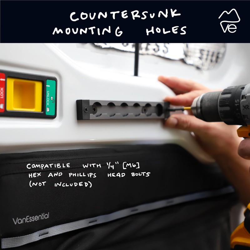 - [Assembly] Mounting holes are strategically drilled every 4 spaces to accommodate common framing locations. Mounting holes are compatible with ¼ inch [M6] hex and phillips head bolts (not included). End caps are available separately as an installation option.