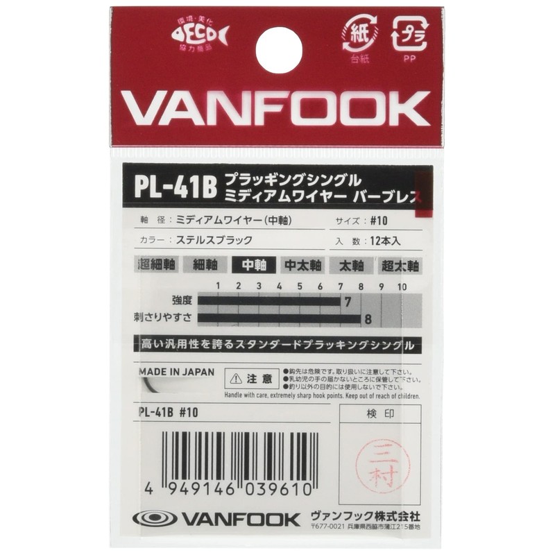 VANFOOK PL-41B Plugging Single Medium Wire Barbless Stealth Black #8