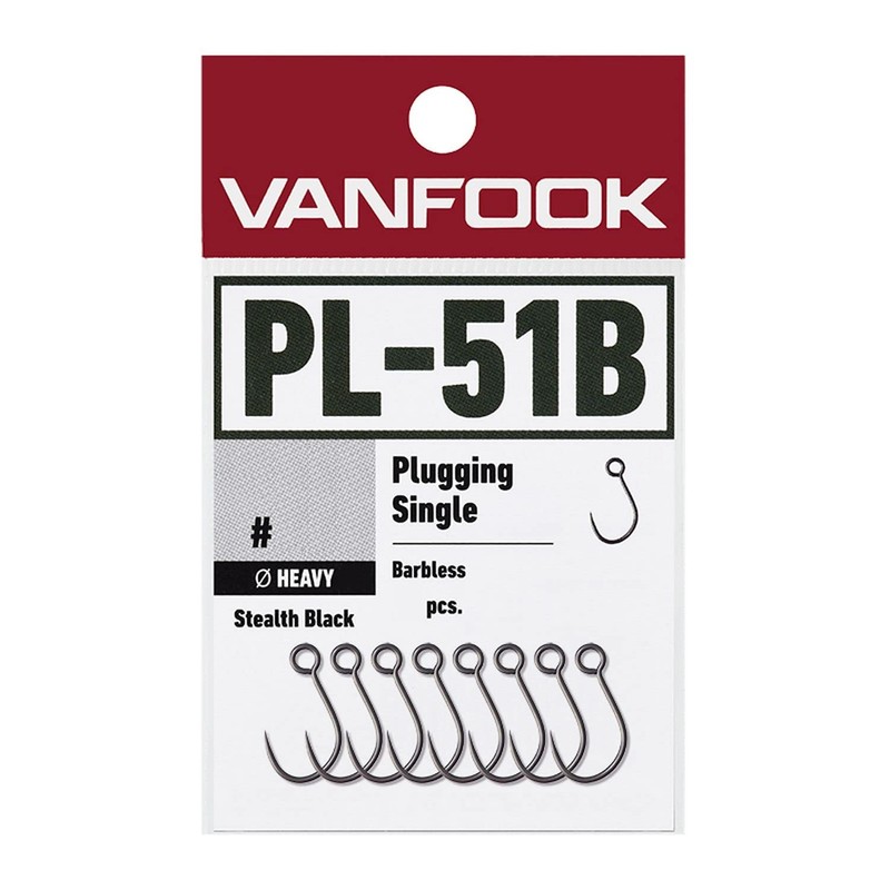 Vanfook PL-51B Plugging, Single Heavy Barbless, 12-Pack, Stealth Black #8