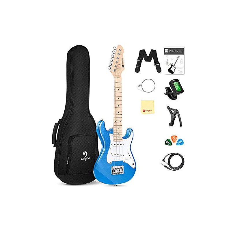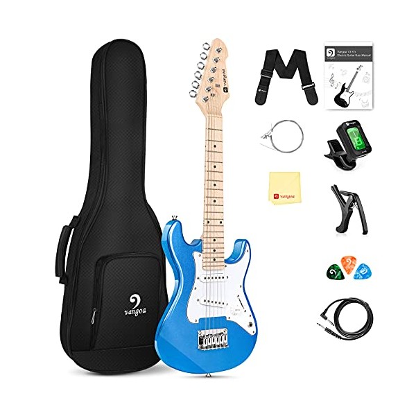 Vangoa Kids Electric Guitar, 30 Inch Electric Guitar Starter Kit for Kids Beginners with Digital Tuner, Capo, Strap, Strings, Cable, Picks, Wrenches - Blue