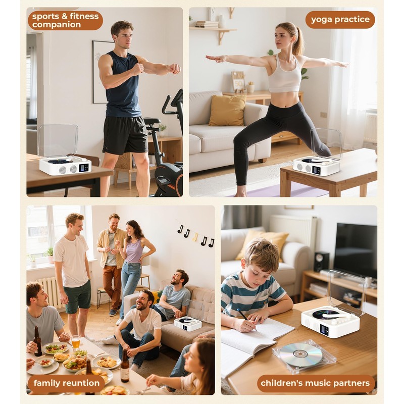 - Modern Design for Every Setting: Perfect for home use, gifting, or as a decorative piece, small CD player features a modern design with a transparent cover, allowing you to enjoy music without hindrance even when the lid is closed. Ideal for modern lifestyles and aesthetic preferences