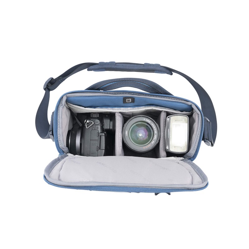 - Discreet and stylish camera bag with full top access flap that opens away from user and multiple pockets for all essentials
