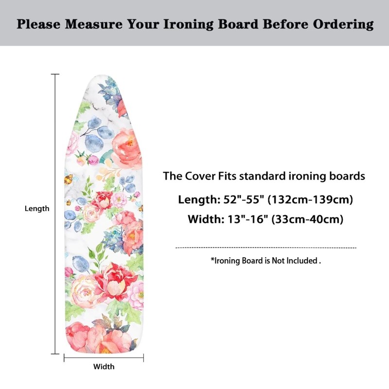 - Easy to install: The ironing board cover is suitable for ironing boards 52 to 55 inches long and 13 to 16 inches wide. If your length and width are within these dimensions, the ironing board cover will fit very well. lroning board is not included.