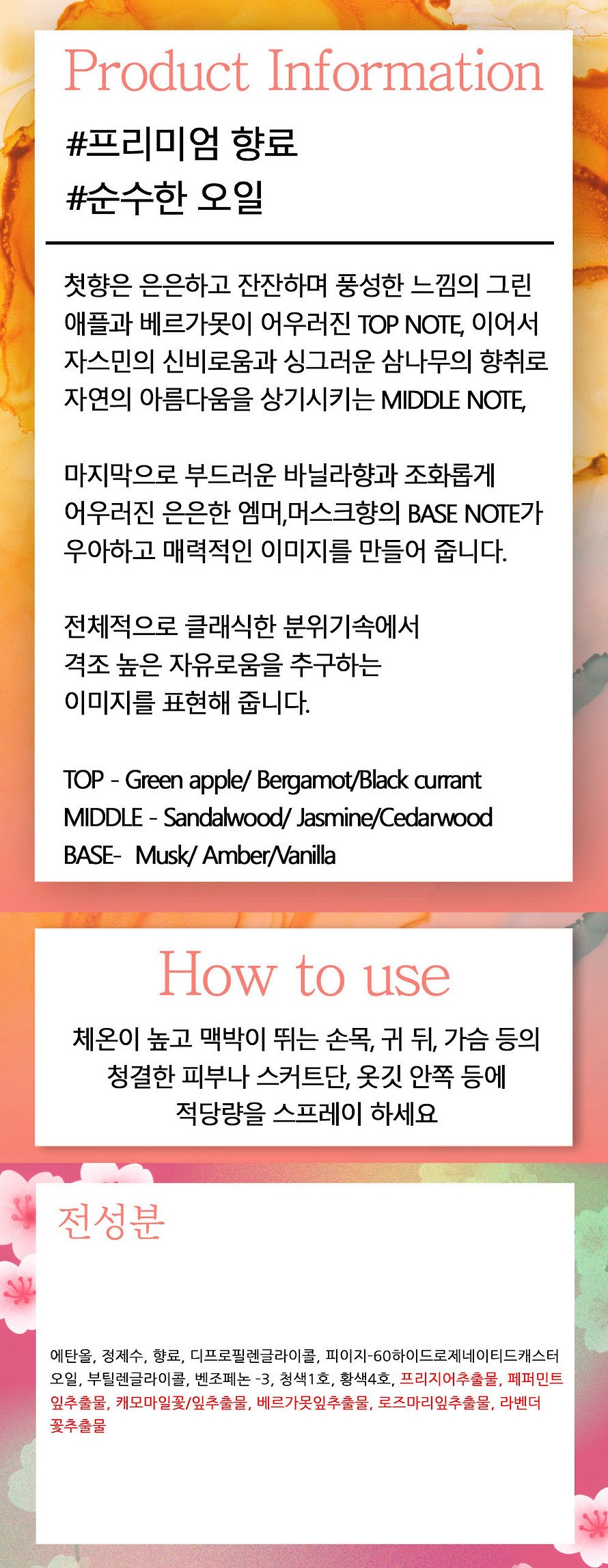 바닐라향 싱그러운 삼나무 그린애플 여성향수 75ml