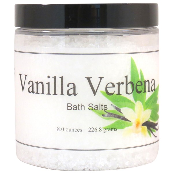 Close your eyes and relax in a warm bath with our bath salts. Our baths salts are made with European Spa Salts. European Spa Salts are solar evaporated and harvested from the pristine waters of the Mediterranean Sea. They are produced using the ancient method of solar evaporation in a region that is free of pollution and has high evaporation rates. European Spa Salts are one of the purest salts in the world. This is a proprietary blend of various sizes of salt crystals. Our bath salts come with a scoop for easy measuring. Our Vanilla Verbena is a blend of bright verbena, Sicilian lemon, orange zest, jasmine, creamy helitrope, amber, white musk, and precious woods. This fragrance is phthalate free.