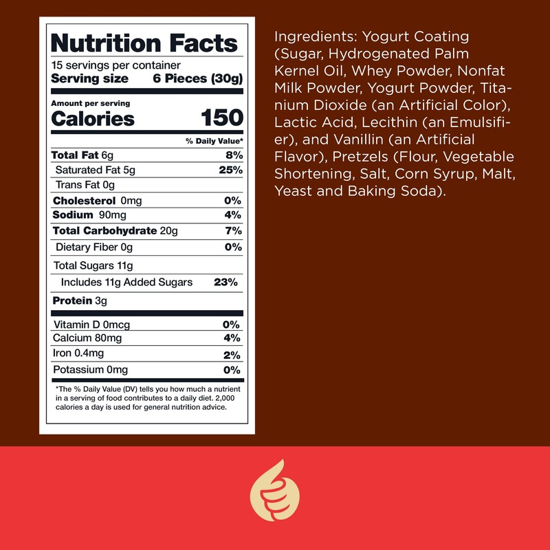 • These salted pretzels are generously enrobed in a sweet vanilla yogurt coating