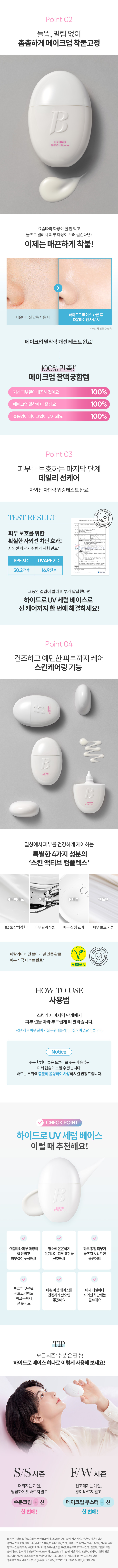 | 사용할 때 주의사항 | 1. 화장품 사용 시 또는 사용 후 직사광선에 의하여 사용부위가 붉은 반점, 부어오름 또는 가려움증 등의 이상 증상이나 부작용이 있는 경우 전문의 등과 상담할 것 2. 상처가 있는 부위 등에는 사용을 자제할 것 3. 보관 및 취급 시의 주의사항 1) 어린이의 손이 닿지 않는 곳에 보관할 것 2) 직사광선을 피해서 보관할 것 |