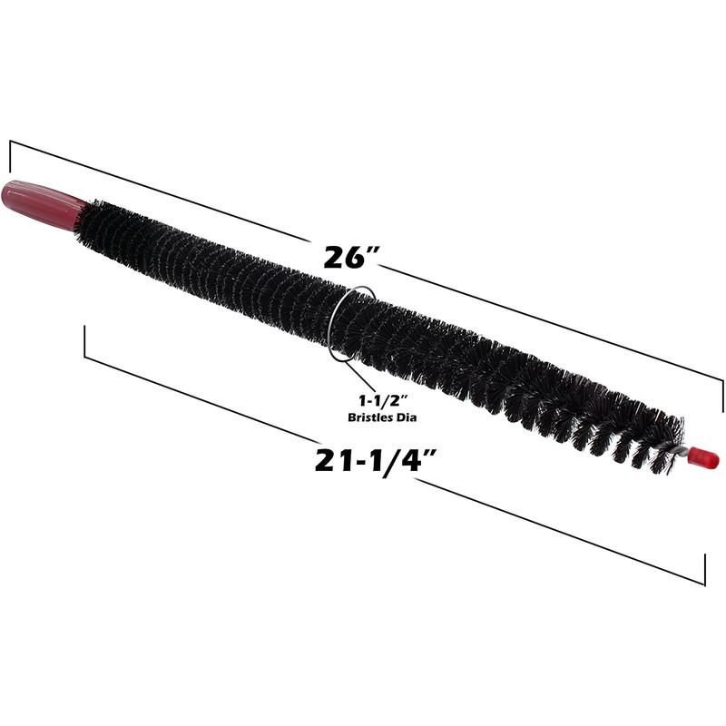 - SPECS: Full Brush Length: 26” - Without Handle: 21-1/4” – Bristles Diameter: 1-1/2” - Steel Wire Diameter: 3/8” – Handle Color: Red