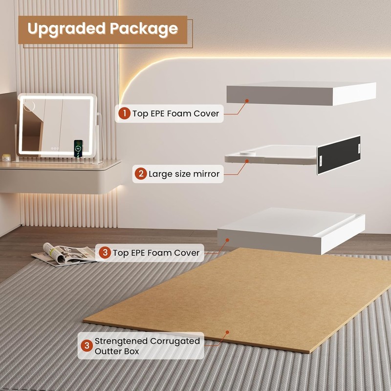- 【Comfortable and Safe Lighting Effects】We can adjust the light up mirror brightness from 10% to 100% by long pressing the round button, and select 6000k cold, 4000k natural or 3000k warm by short pressing the round button; CRI>90 eye protection LED light strip, service life of 50,000 hours; it will be our safe and reliable partner