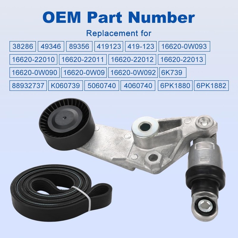 - Replace Part Number: Replacement for 38286, 49346, 89356, 419123, 419-123, 16620-0W093, 16620-22010, 16620-22011, 16620-22012, 16620-22013, 16620-0W090, 16620-0W09, 16620-0W092, 6K739, 88932737, K060739, 5060740, 4060740, 6PK1880, 6PK1882