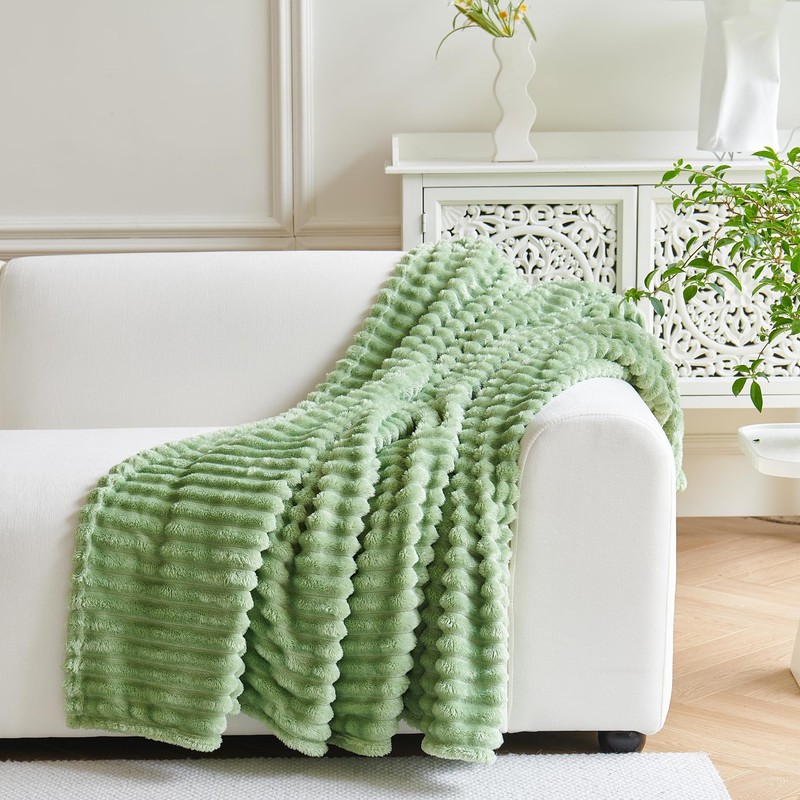 - PREMIUM MATERIAL: Crafted with VANJOROY's 100% ultra-fine microfiber, this luxuriously fleece throw blanket delivers irresistibly plush softness for year-round comfort. The 3D striped texture creates a sensory-rich experience, offering exceptional warmth without overheating. Lightweight yet insulating, its advanced moisture-wicking design prevents sweat buildup