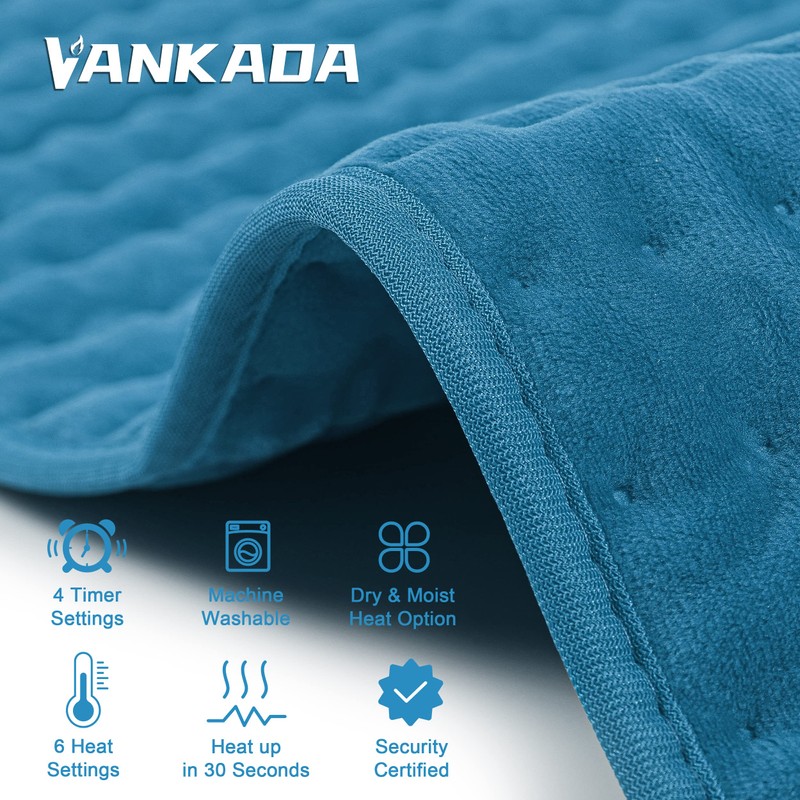 vankada Heating Pad Electric Heat Pad, Hot Heated Pad,Moist Heat Heating Pad Moist and Dry Heat,Multiple Temp and Timer Settings