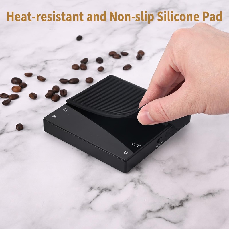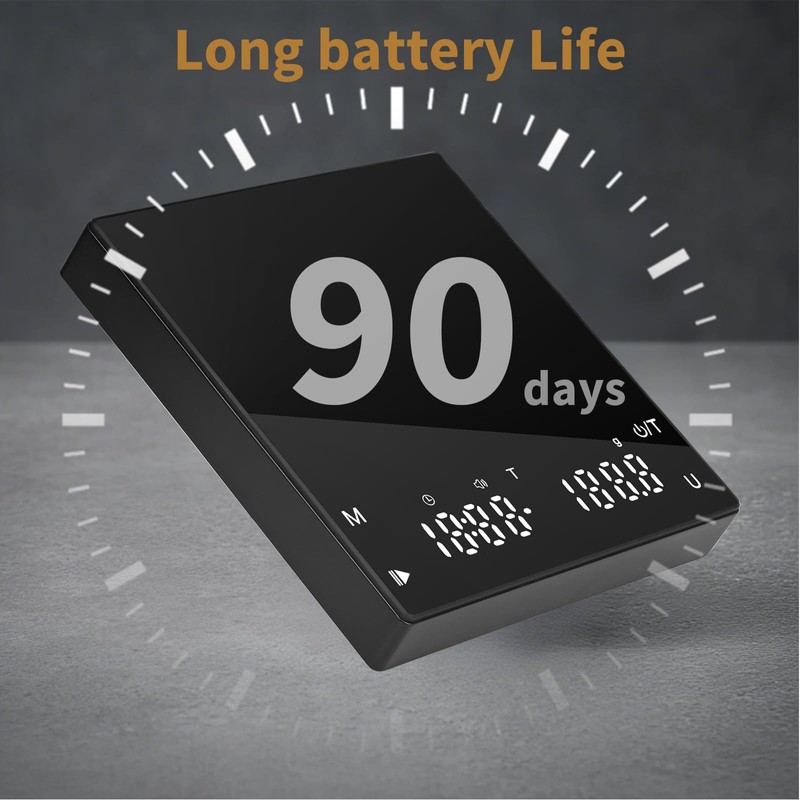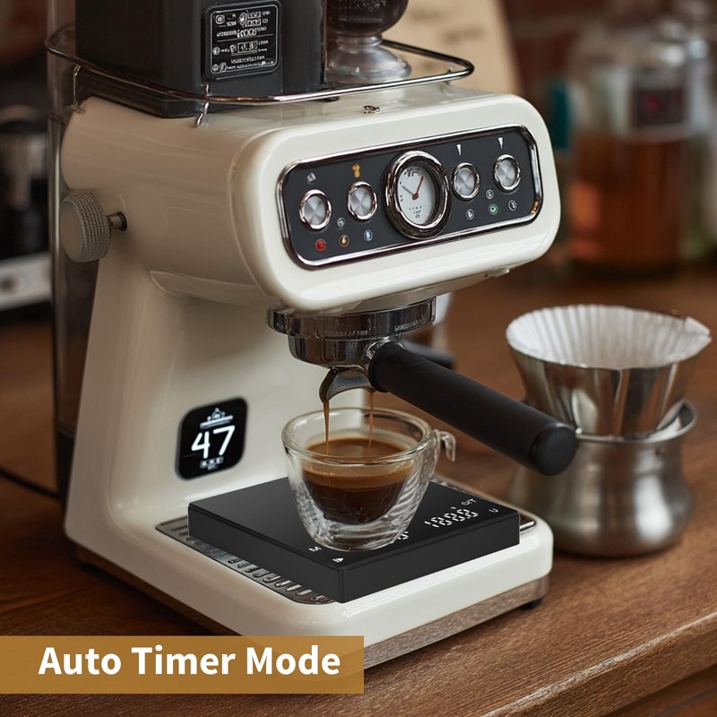 - DIGITAL COFFEE SCALE WITH TIMER This digital coffee scale allows accurate time control, allowing you to precisely prepare espresso and filter coffee according to recipe.