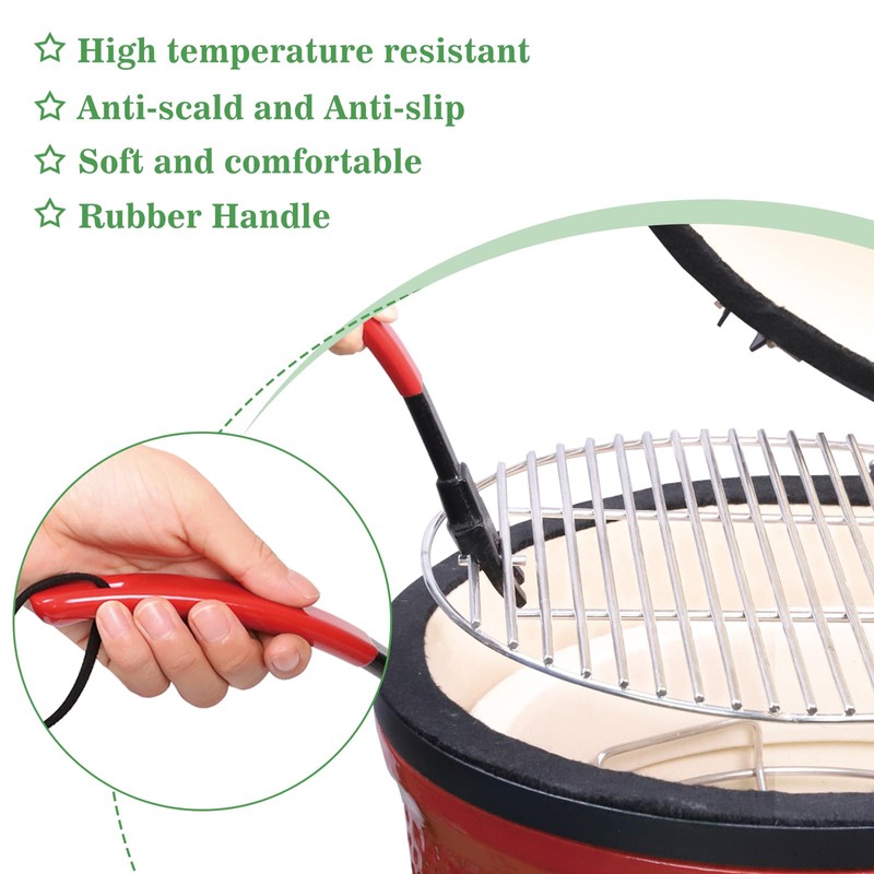 - [Extra-long force arm, suitable for a variety of cast iron grilling nets and grilles] The product has a long power arm. According to the lever principle, the design can lift the cast iron panel more easily. In addition, this grill tool is suitable for most heavy cast iron grates, half moon cast iron grills, such as Big Green Egg, Kamado Joe, Primo, Pit Boss, Louisiana and other kamado grills.