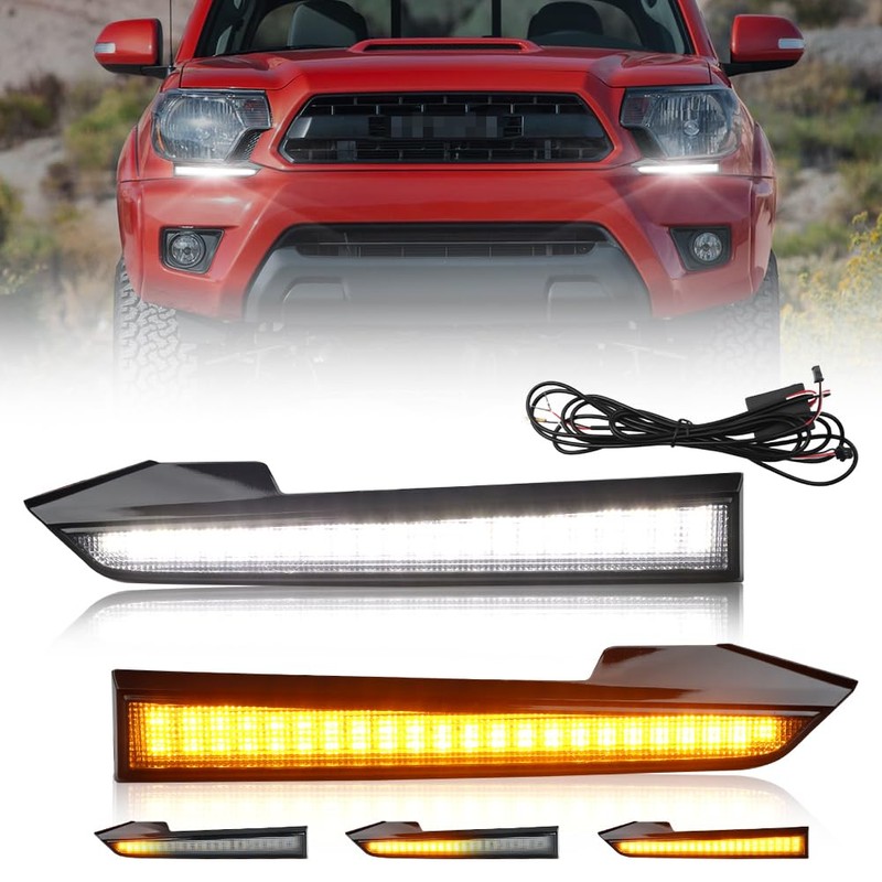 VANKUB 2 PCS Sequential Switchback LED Front Side Marker Headlight Daytime Running Light for Toyo-ta Tacoma 2012 2013 2014 2015 Replacement Front Bumper White Daytime Running Lamp Amber Led Light