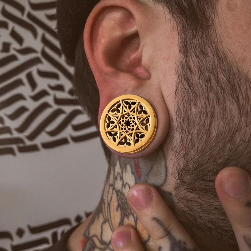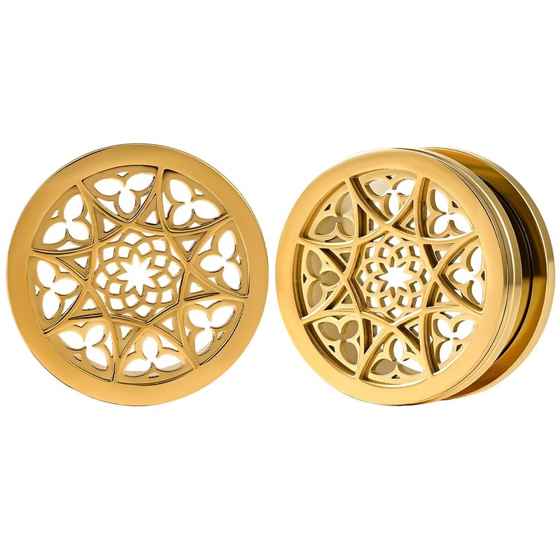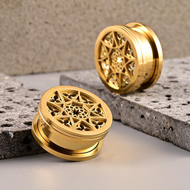 Vankula Ear Tunnels Flesh Gauges Double Flared Plugs Hollow Flower Stretcher Expander Stainless Steel Ears Piercing 8mm to 25mm (10mm(00G), Gold)