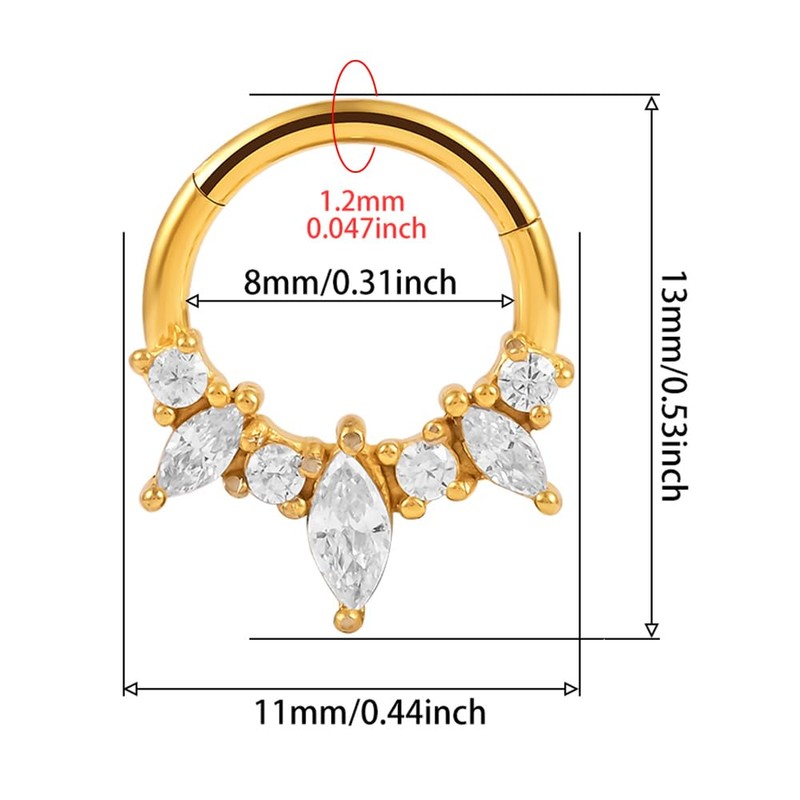 - Septum piercing surgical steel 1.2 x 8 mm can be used as cartilage hoop, helix rings, rook rings, lobe rings, tragus rings, conch rings, daith hoop. Unique style design is a real eye-catcher fashion ear piercing jewellery for special occasions.