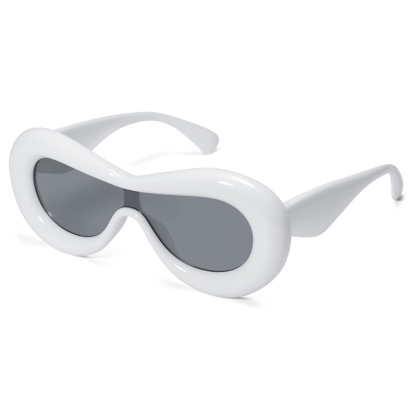 VANLINKER Oversized Thick Inflated Sunglasses Womens Mens Trendy Oval One Peice Glasses Funny Aesthetic Shades VL9729, C5 White