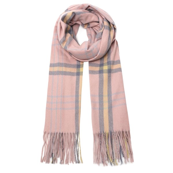 VANLINKER Pink Winter Scarf for Women Men Super Soft Luxury Tartan Strip Plaid Cashmere Feel Shawl Wrap Warm Blanket VL9324 C1 Pink Blue Striped Plaid