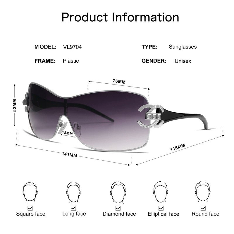 - đăY2K ONE-PIECE SUNGLASSESăVANLINKER 2000s sunglasses have an ultra-cool look with huge one-piece lenses that wrap around the eyes perfectly. The smooth lines of the frame, the gradient lenses, and the comfortable temples are connected by dazzling diamonds, which are not only unique but also fashionable.