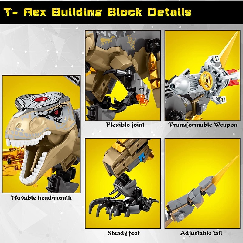 - [Cool Desktop Decorations]: This Transformable dinosaur building block is different from ordinary dinosaurs. When it becomes an upright steel mecha T- rex, it will be a unique decoration!