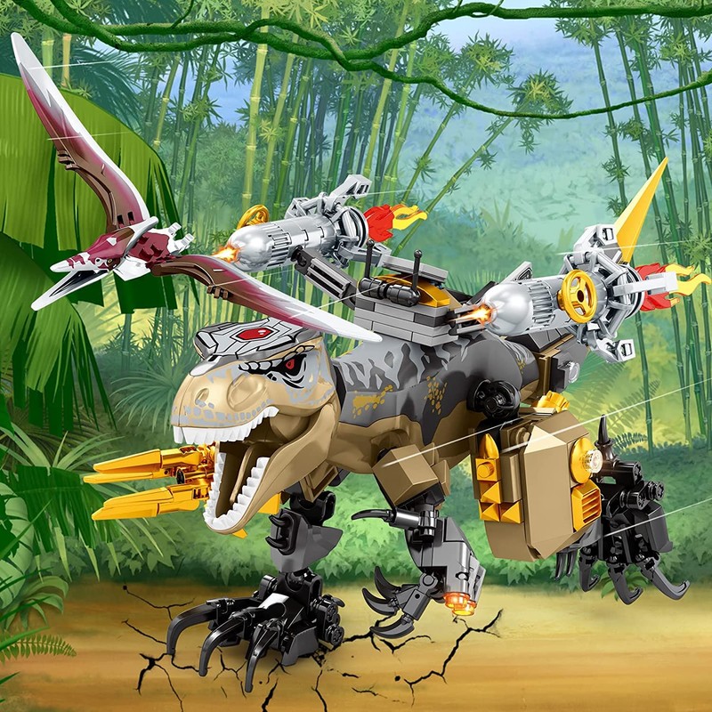 - [Two Forms of Deformation]: This 2-in-1 dinosaur building blocks toy can be transformed into T-Rex and Aeolian Pterosaur and dinosaur; T-Rex will become an upright steel mecha warrior after simple change ! Kids will enjoy the dinosaur adventure game with courage and creativity!