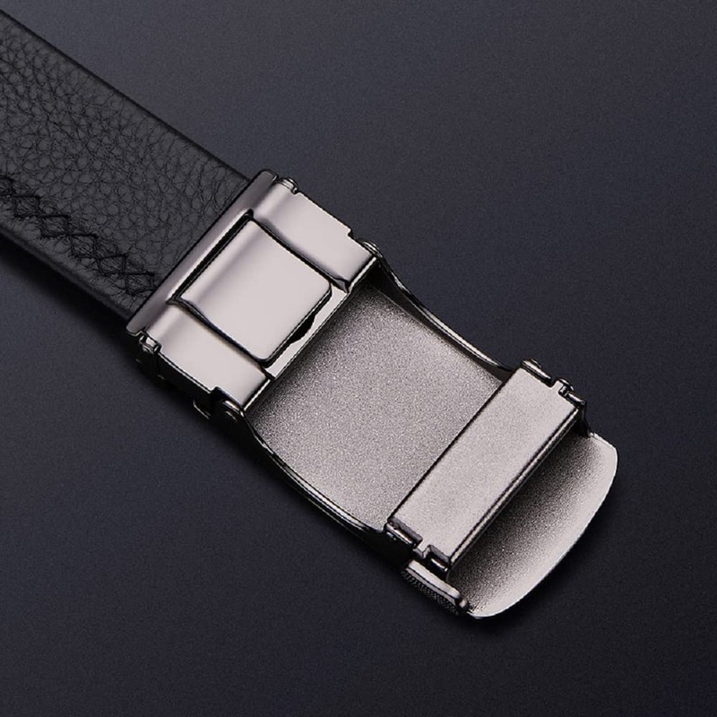 VANNANBA Cinturón automático de cuero genuino para hombre, con elegante caja de regalo, Negro 01, 42"-45" Waist Adjustable