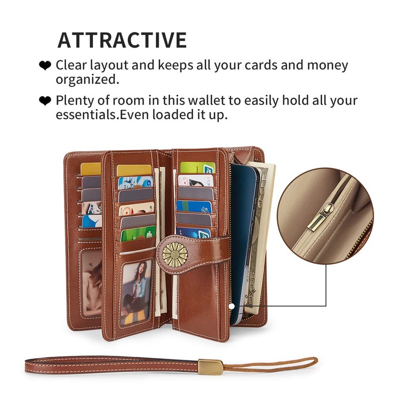 • □Fashionable Design: Decorated with sunflower metal logo and snap buttons, the wallet looks elegant and eye-catching.