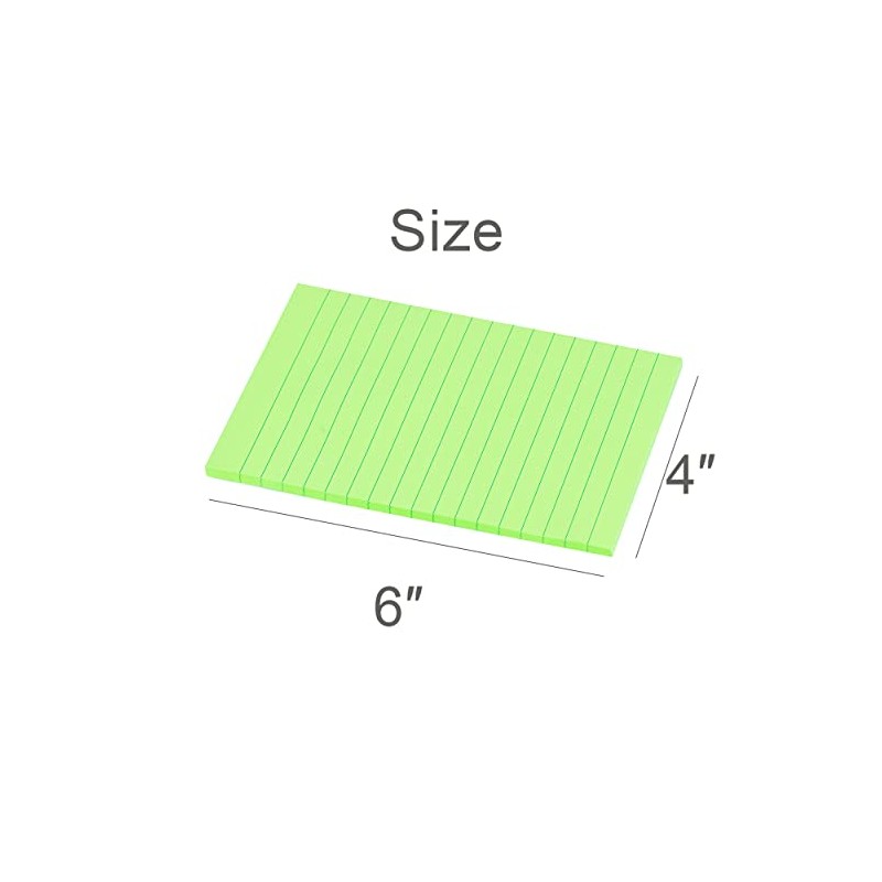 Vanpad Lined Sticky Notes 4X6 in Bright Green Ruled Stickies Super Sticking Power Memo Pads Strong Adhesive, 6 Pads/Pack, 45 Sheets/pad
