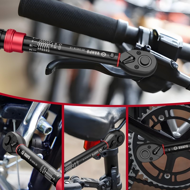 VANPO 1/4-inch Drive Click Torque Wrench, 20-240 in. lb/2.3-27.1 Nm,Dual-Direction Adjustable Torque Wrench Set with 1/4" to 3/8" Adapter, 10cm Extension Bar, Inch Pound Torque Wrench for MTB, Bicycle