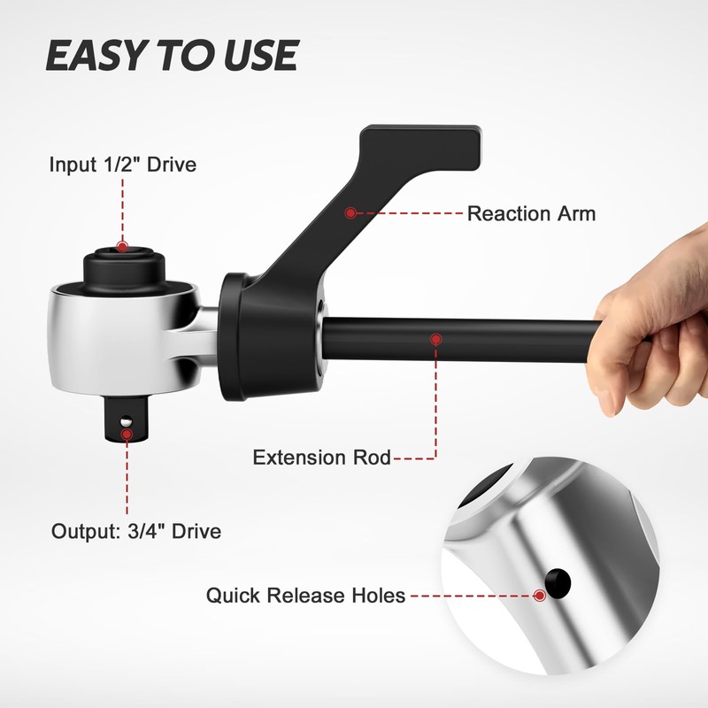 - 【Different Accessory Options】This torque multiplier set offers two different fittings: a reaction arm and an extension bar. Both units are easy to install and convenient to operate. The two different fittings can be used in a variety of spatial angles, and the operator can choose the appropriate fittings for use according to their needs, which is very convenient.