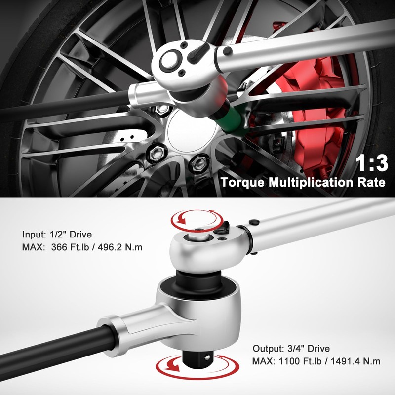 VANPO Torque Multiplier, 1:3 Torque Ratio, Heavy Duty Torque Multiplier Wrench, 3/4" Drive Output 1100 Ft.lb/1491.4 N.m, 1/2" Drive Input 366 Ft.lb/496.2 N.m for Car, Truck, RVs Maintenance