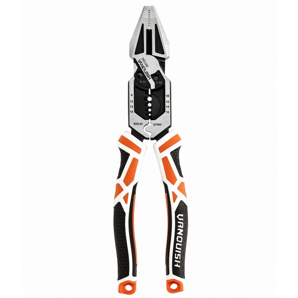 - Multifunctional Design---This heavy-duty 8-in-1 pliers has the functions of wire stripping, cutting, winding, twisting, crimping, bolt shearing, clamping, deburring. You do not need to change tools frequently, improve work efficiency.