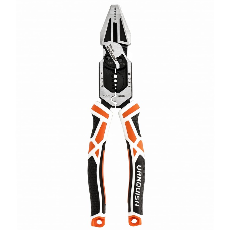 VANQUISH 8-in-1 Linesman Pliers, 8’’ Multipurpose Combination Pliers Wire Cutter/Crimper/Stripper, CRV Steel Hand Tool, Heavy Duty Side-Cutting Pliers for Crimping, Stripping, Shearing, Screwing, 3238
