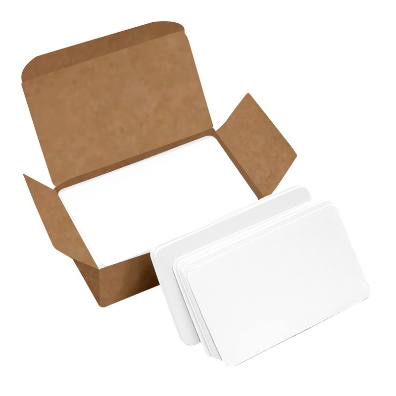 - 「仕様」:用紙サイズ:53mm×90mm 素材:クラフト紙。1箱100枚入りですが、3セットあります。このような無地カードは300枚です。名刺やメッセージカードなど多用途にお使いいただけます。