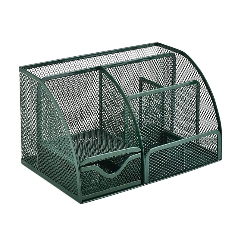 VANRA™ Desk Organizer, Pen Holder, Metal Mesh Pen Stand with Drawer, Pen Case, Multi-functional Storage Box, Pencil Case, Small Box (Dark Green)