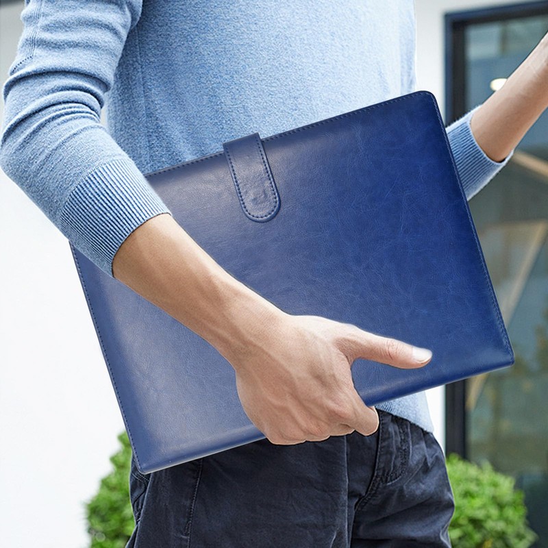 - [Great for Meeting and Everyday Use] Comes with a handy tablet clip, legal pad holder and pen holder, simple business folder holds documents and notepads with ease. Sleek leather portfolio for men can slip smoothly into any tablet/laptop case, briefcases, bags, bookbag or backpack.