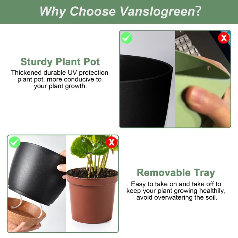 Vanslogreen's plastic planters indoor outdoor are modern and practical. If our planter pots for indoor plants does not meet your expectations, please contact us so we can improve your experience.