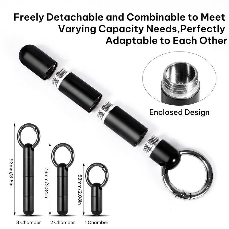- Pure Titanium Alloy: This pill holder is crafted from pure titanium steel, a material renowned for its exceptional qualities, including resistance to pressure, durability, lightweight design, non-toxicity, and recyclability. These features ensure the utmost safety and protection for your pills